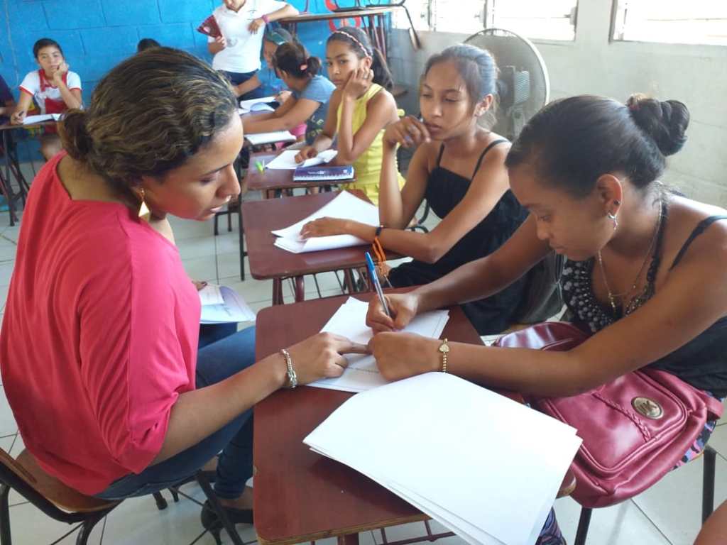 Jovensitas de 10-17 años, algunas con bebés pequeñitos, otras recién salidas del mundo de las drogas y aquí estas 3 valientes: Junieth, Samantha y Massiel enseñandoles una manera de darle valor a su vida. Las 3 valientes, miembros de la red YLAI montaron un precioso proyecto con el apoyo de la Embajada de Estados Unidos en Nicaragua.